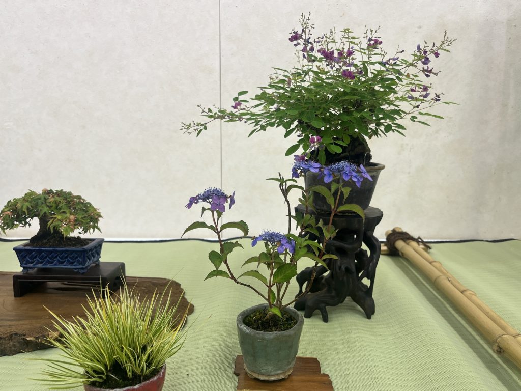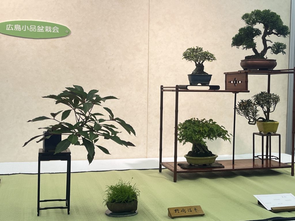 小鉢仕立てにした盆栽を棚飾りや平飾りの組ものとして展示します。 開催日時 6月6日(土)~6月8日(月) 会場 展示資料館1階展示室 共催 広島小品盆栽会 臨時売店(販売) あり(予定) 初夏の小品盆栽展 展示風景
