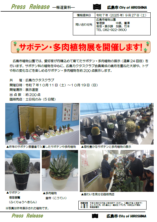ホーム > 新着情報 > サボテン・多肉植物展を開催します(2025年9月27日)
