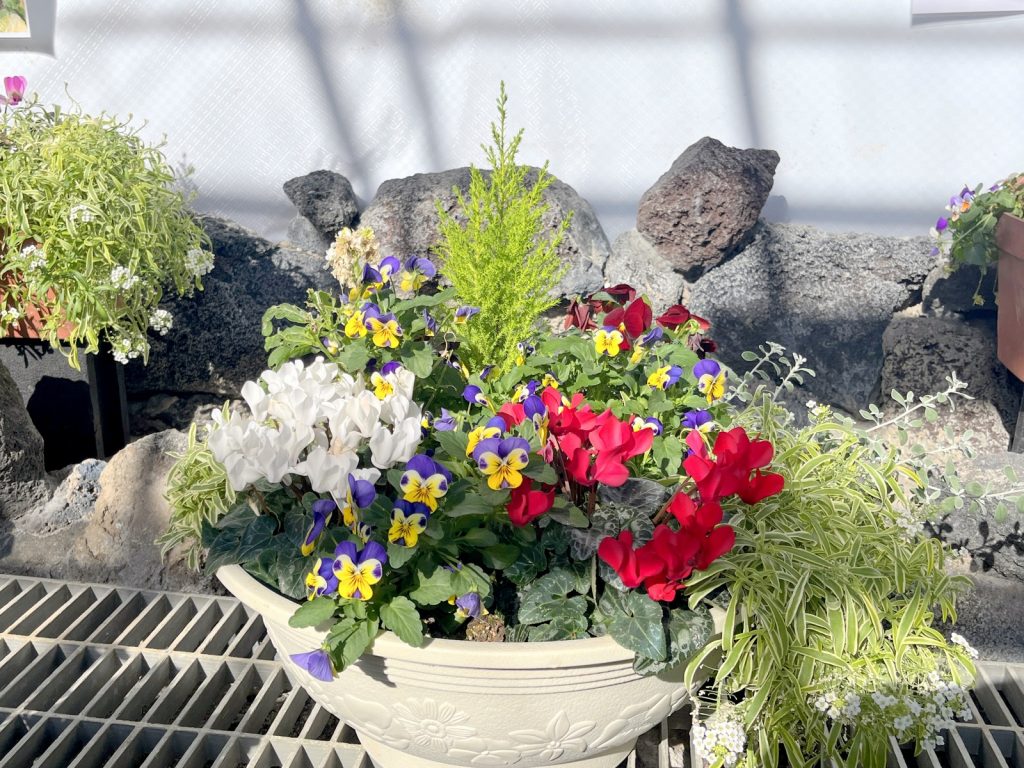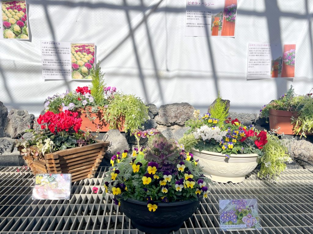 シクラメンやカランコエなど冬に楽しむことができる鉢花を展示します。