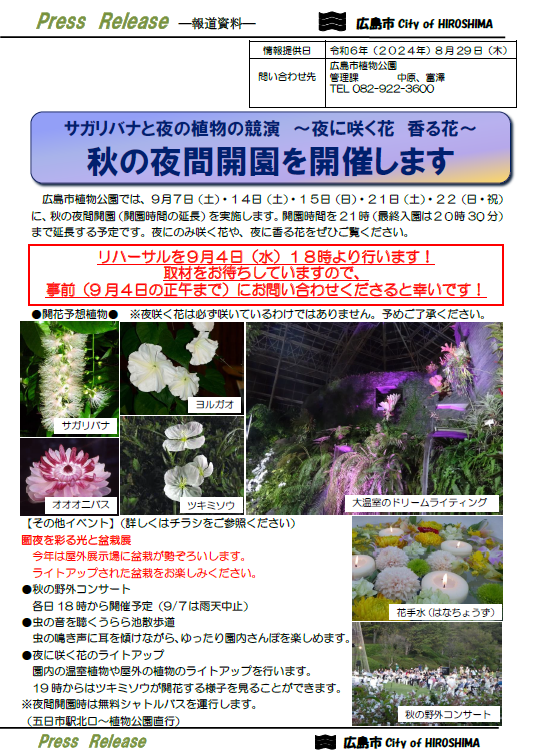 チラシ表http://www.hiroshima-bot.jp/shokubutsu/wp-content/uploads/2024/08/202409-yakankaien.pdf