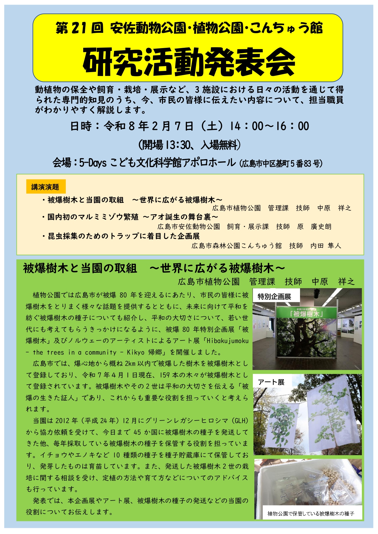 動物公園・植物公園・こんちゅう館で行われた研究活動について、一般の方にも分かりやすく解説します。