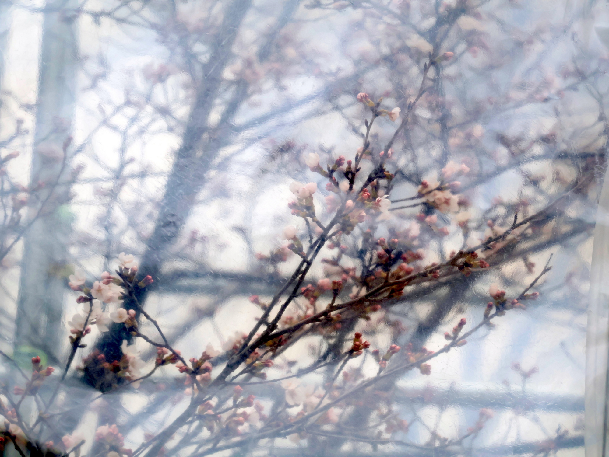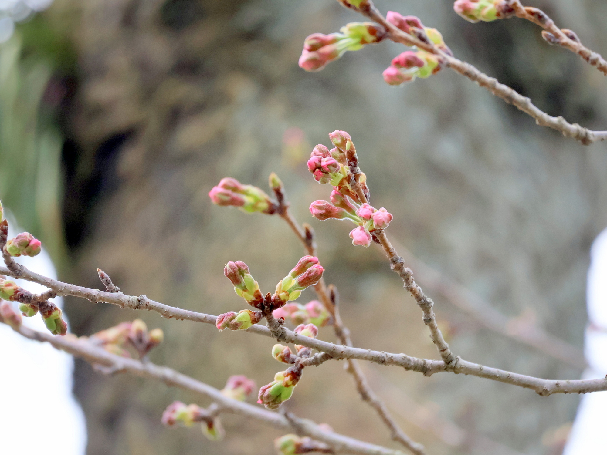 開花促成している染井吉野の蕾がほころび始め。今週末には花を見ることが出来そうです。