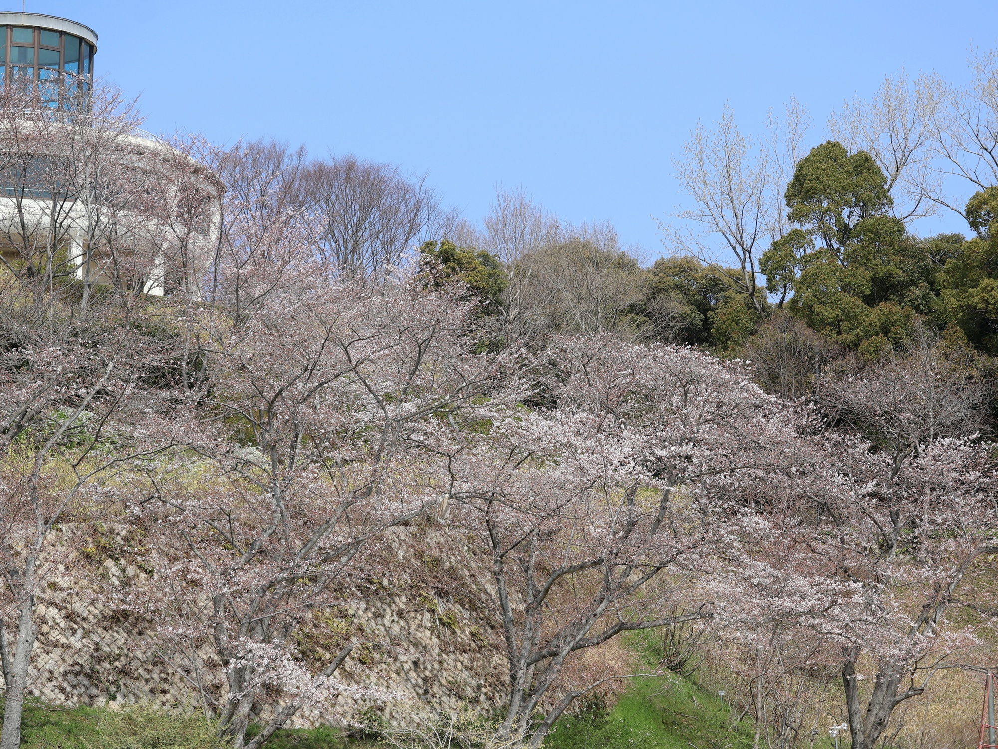 イベント広場の越の彼岸桜が満開です。染井吉野は現在五分咲き、月末には満開を迎えます(来週末も見頃)。紅枝垂(しだれ桜)、小松乙女、マメザクラなど見頃の桜の種類も増えてきました。
