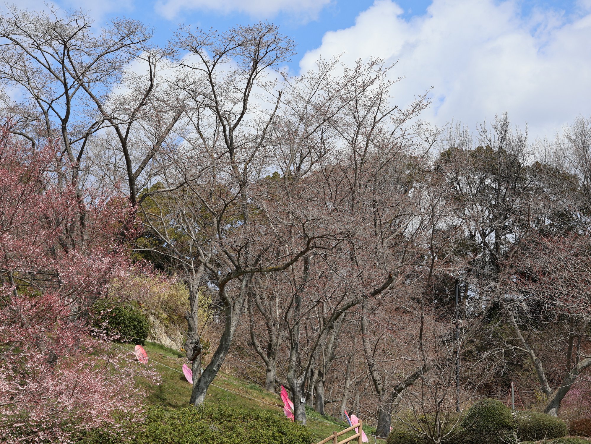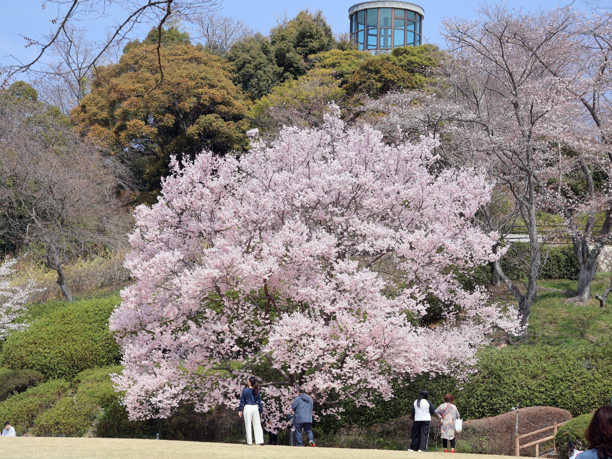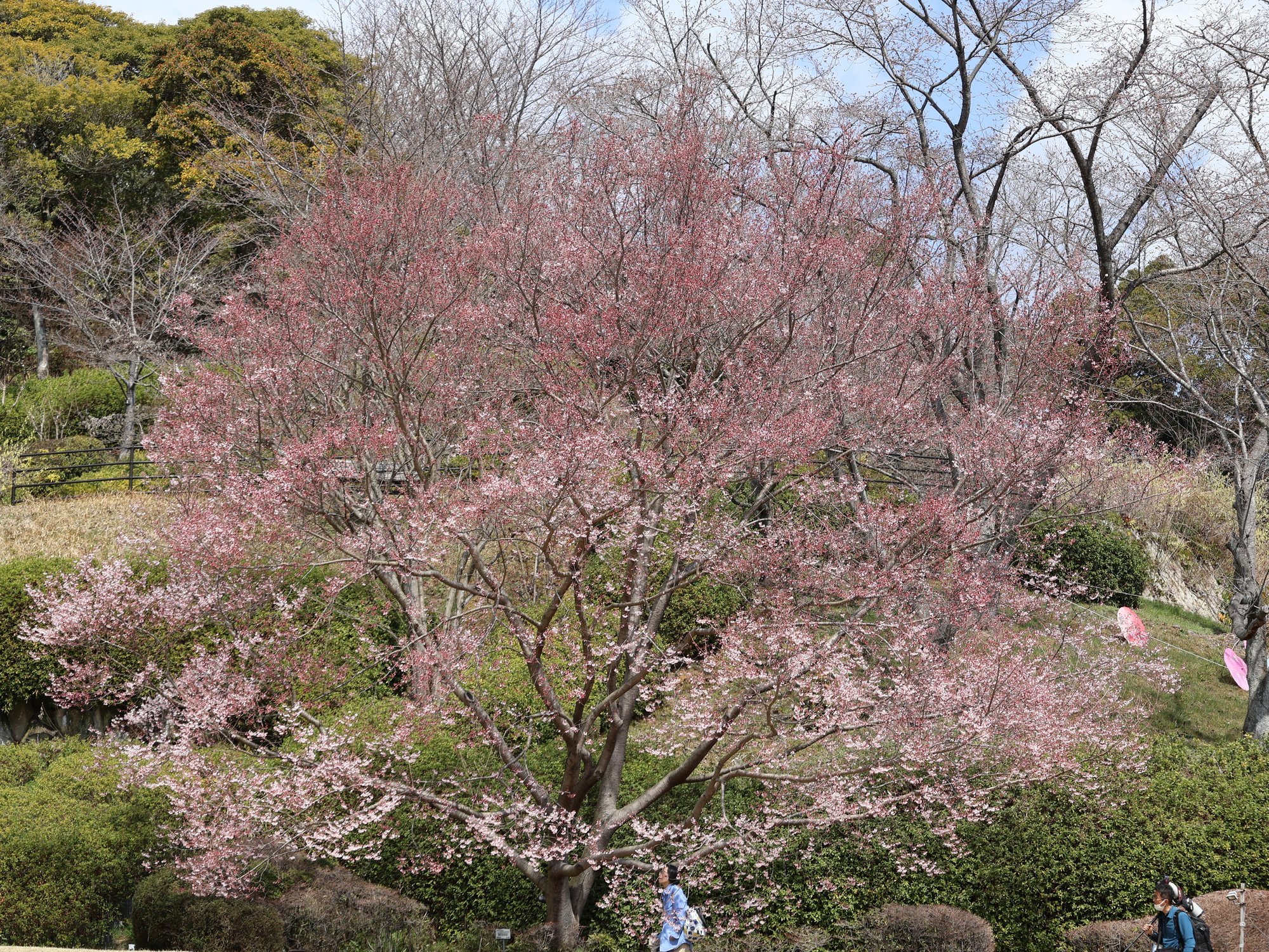 広島市植物公園には、約70種250本の桜があり、3月中旬から4月末にかけて、様々な種類の桜が咲き移ろっていきます。