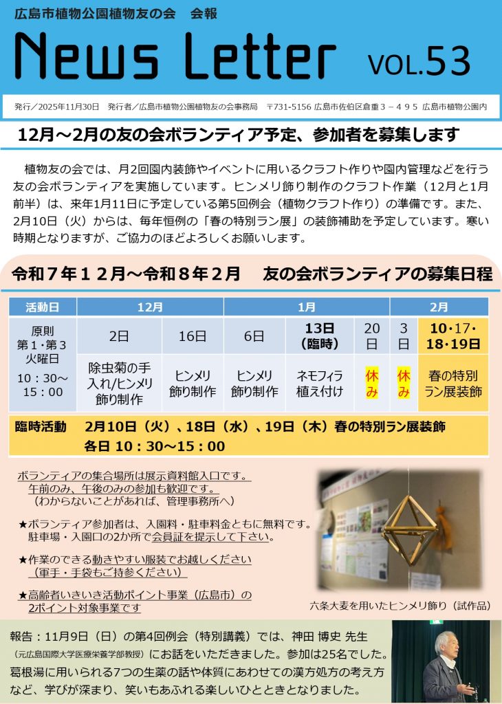 植物友の会ニュースレターVol.53(2025年11月30日発行)