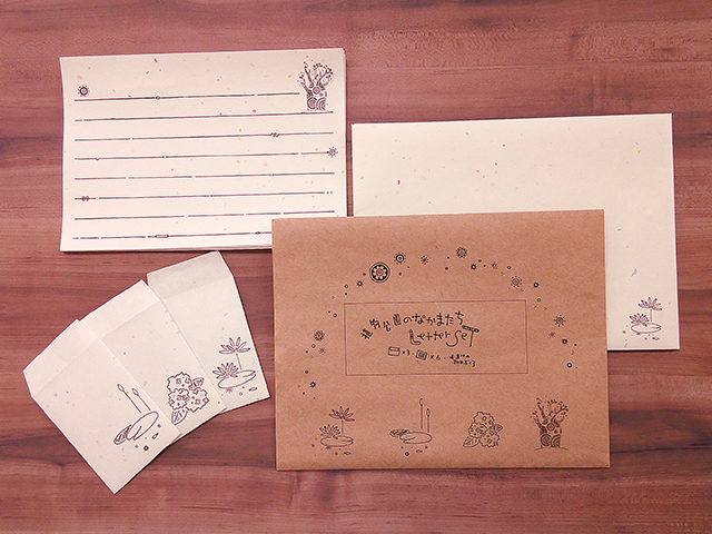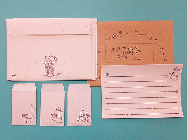 メモ帳やレターセットは、千羽鶴再生紙でできています。